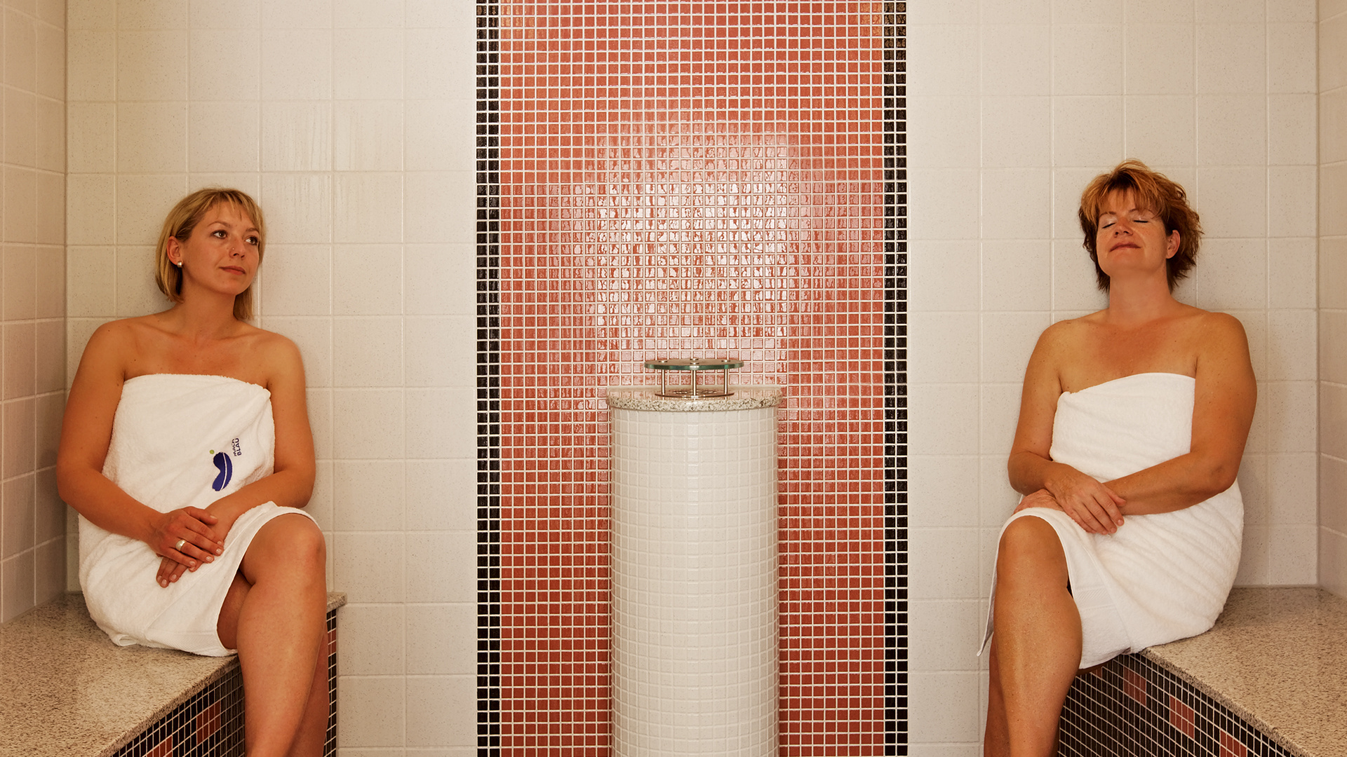 Das Dampfbad bietet sanfte Entspannung für Genießer. Bei einer Höchsttemperatur von 50°C bietet das Dampfbad eine herrliche Atmosphäre den Alltag zu vergessen. Umhüllt von warmen Nebel in Kombination mit verschiedenen Düften öffnen sich die Atemwege und die Muskulatur kann sich in der warmen Umgebung lösen und entspannen.Damensauna